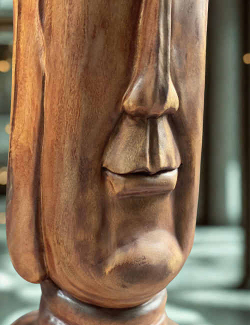 Hand-carved from natural solid wood, this Buddha head sculpture embodies serenity and wisdom. The smooth lines of the closed eyes and gentle smile radiate calmness, while the detailed spiral hair pattern symbolizes enlightenment. Its deep brown finish enhances the natural grain of the wood, making it both a spiritual symbol and a timeless piece of art.