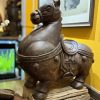 Hand-carved from natural solid wood, this whimsical sculpture portrays a quirky squirrel tightly holding its acorn with an expressive face and oversized eyes. The exaggerated long snout and curled tail bring a humorous, playful energy, while the detailed wood textures highlight the artisan’s craftsmanship. Both imaginative and lively, this artwork makes a perfect collectible for those who love unique and character-filled creations.
