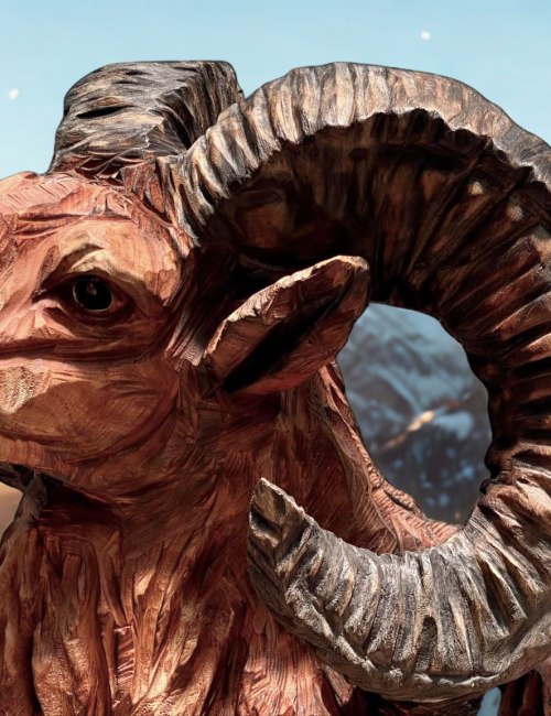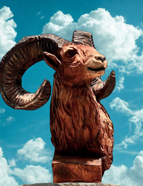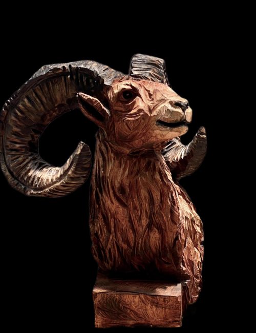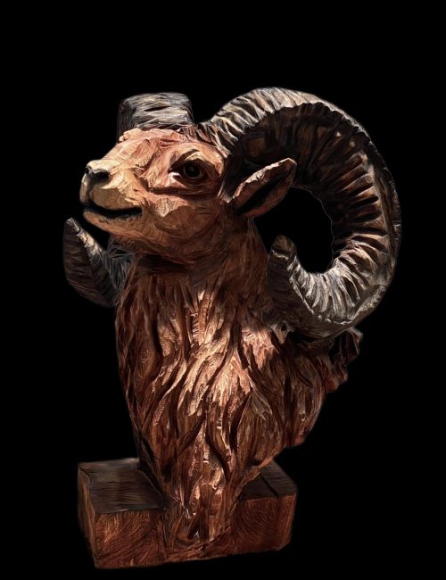 Hand-carved from natural solid wood, this sculpture portrays a powerful ram with finely detailed curling horns and textured fur. The lifelike expression and bold carving strokes emphasize the ram’s strength, determination, and resilience. Its natural wood tones and hand-polished finish bring warmth and depth, making it both a striking decorative piece and a symbolic artwork of vitality and endurance.