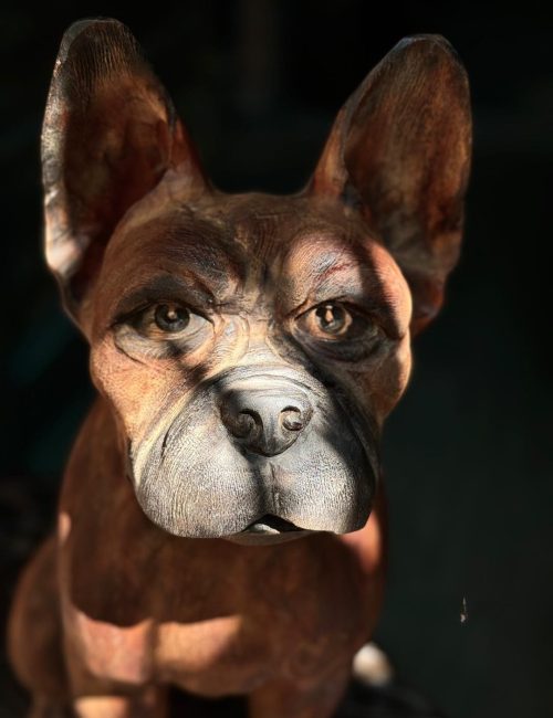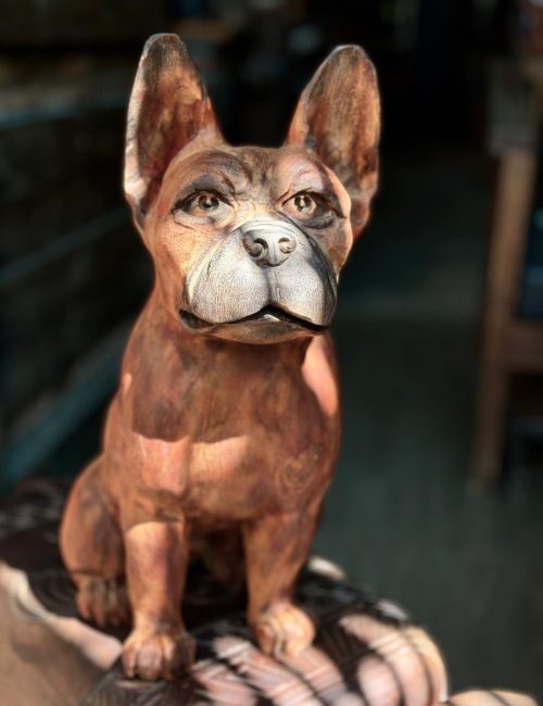 Hand-carved from natural solid wood, this charming Bulldog sculpture represents loyalty, companionship, and warmth.