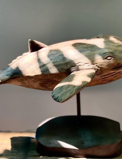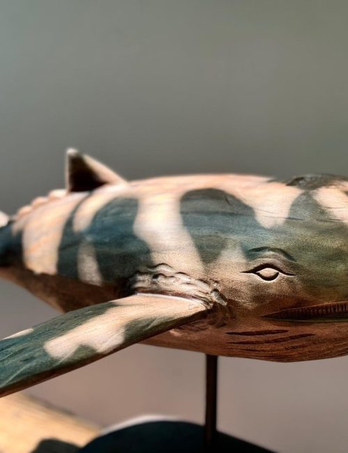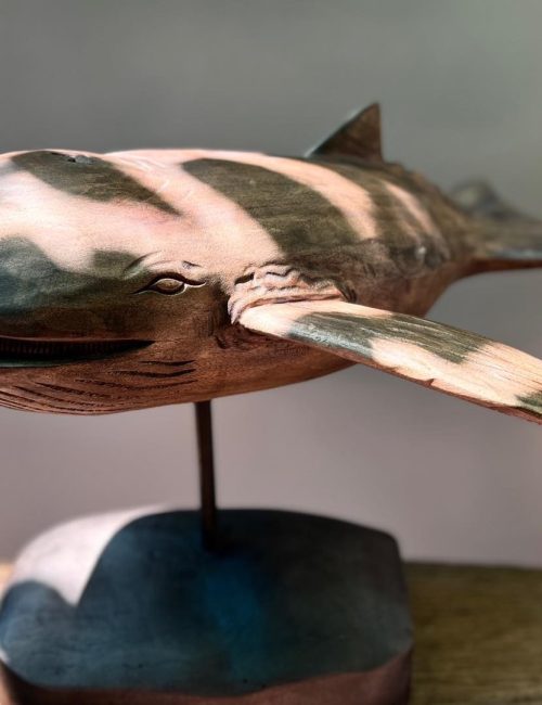Hand-carved from natural solid wood, this graceful whale embodies peace, strength, and the majestic spirit of the ocean.