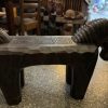 Hand-carved from solid natural wood, this stool features an elegant dragonfly motif and intricate geometric carvings.