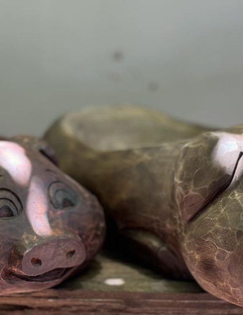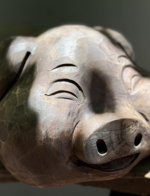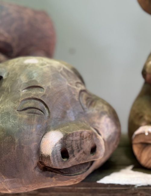 Hand-carved from natural solid wood, this adorable pig tray combines functionality with playful charm.