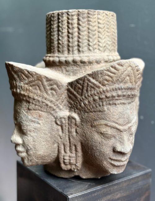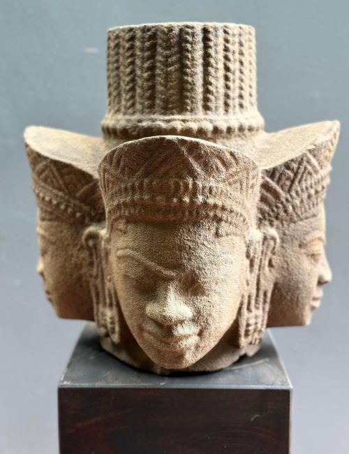 Hand-carved from natural sandstone, this four-faced sculpture reflects the sacred symbolism of wisdom, protection, and balance in Champa heritage. Each face is intricately detailed, radiating serenity and strength, making it a rare and meaningful cultural artwork for collectors and spiritual spaces.